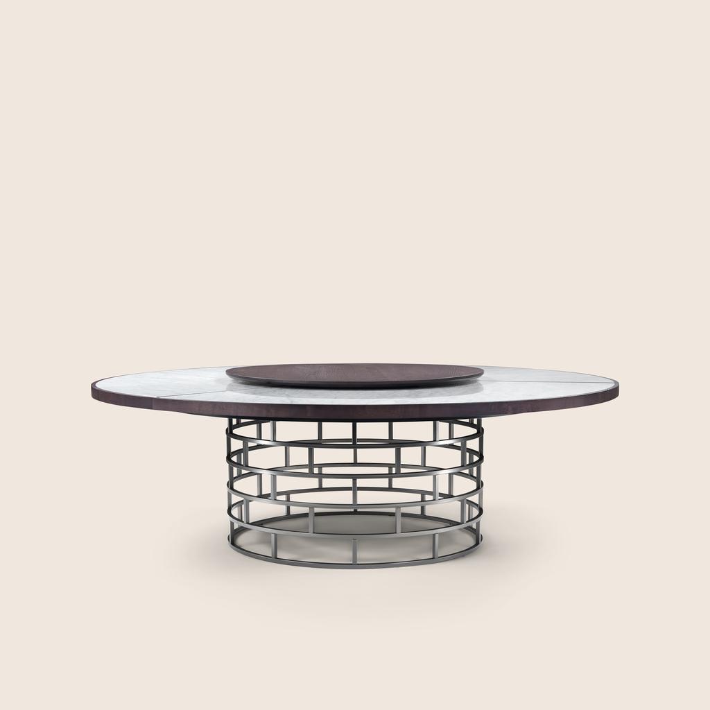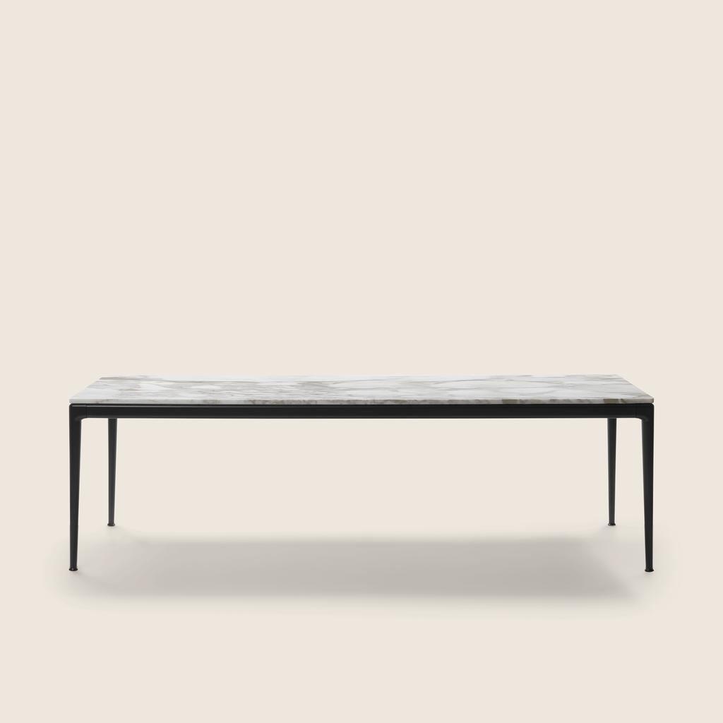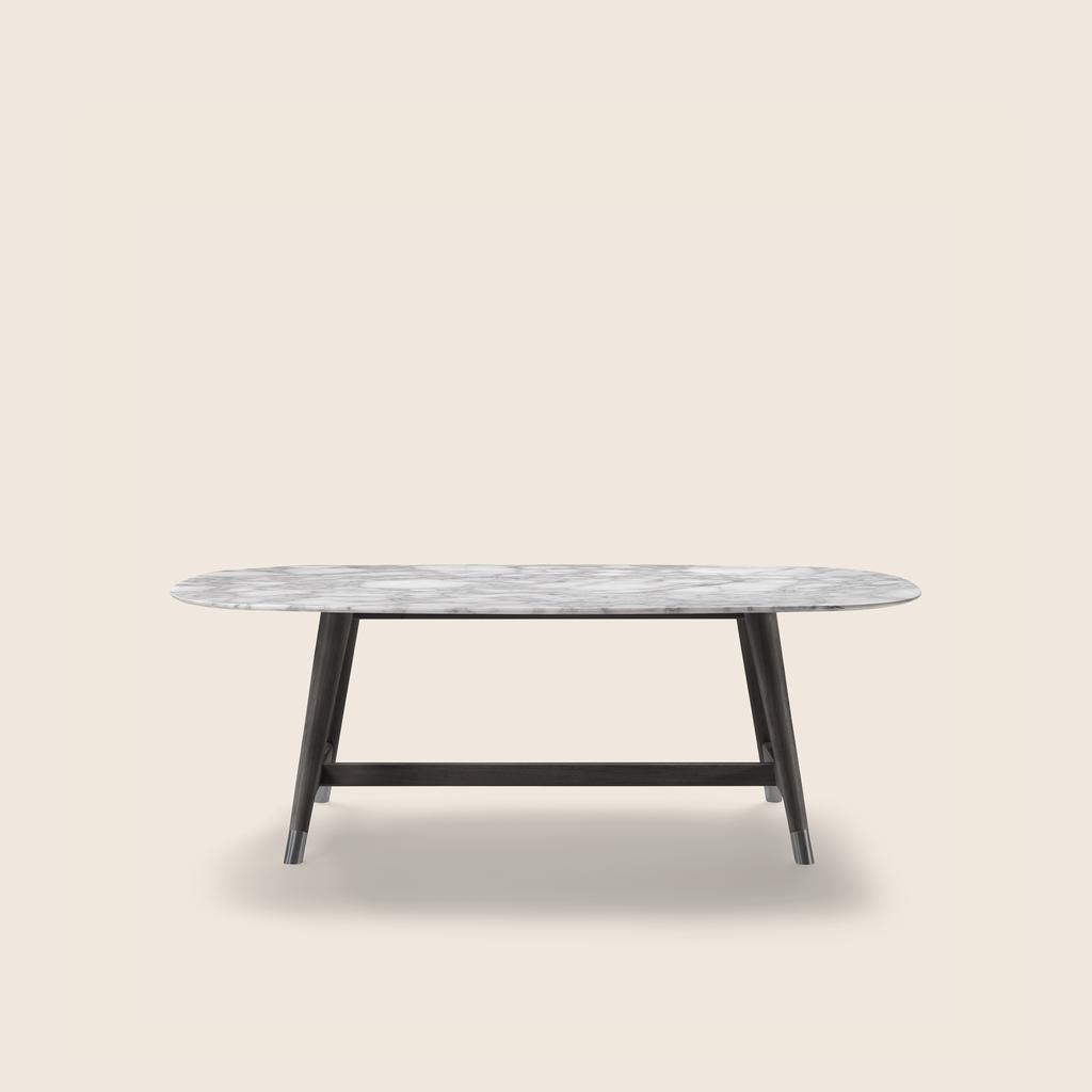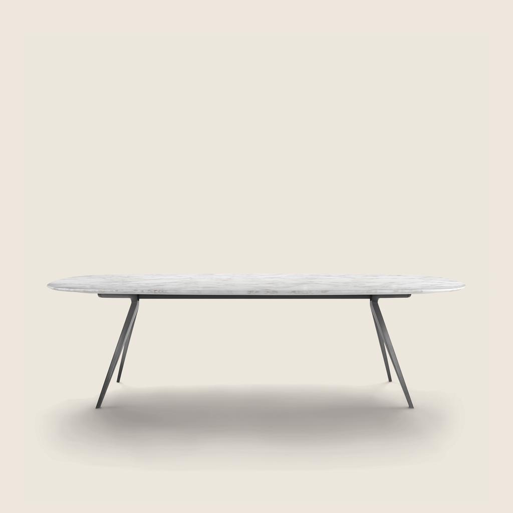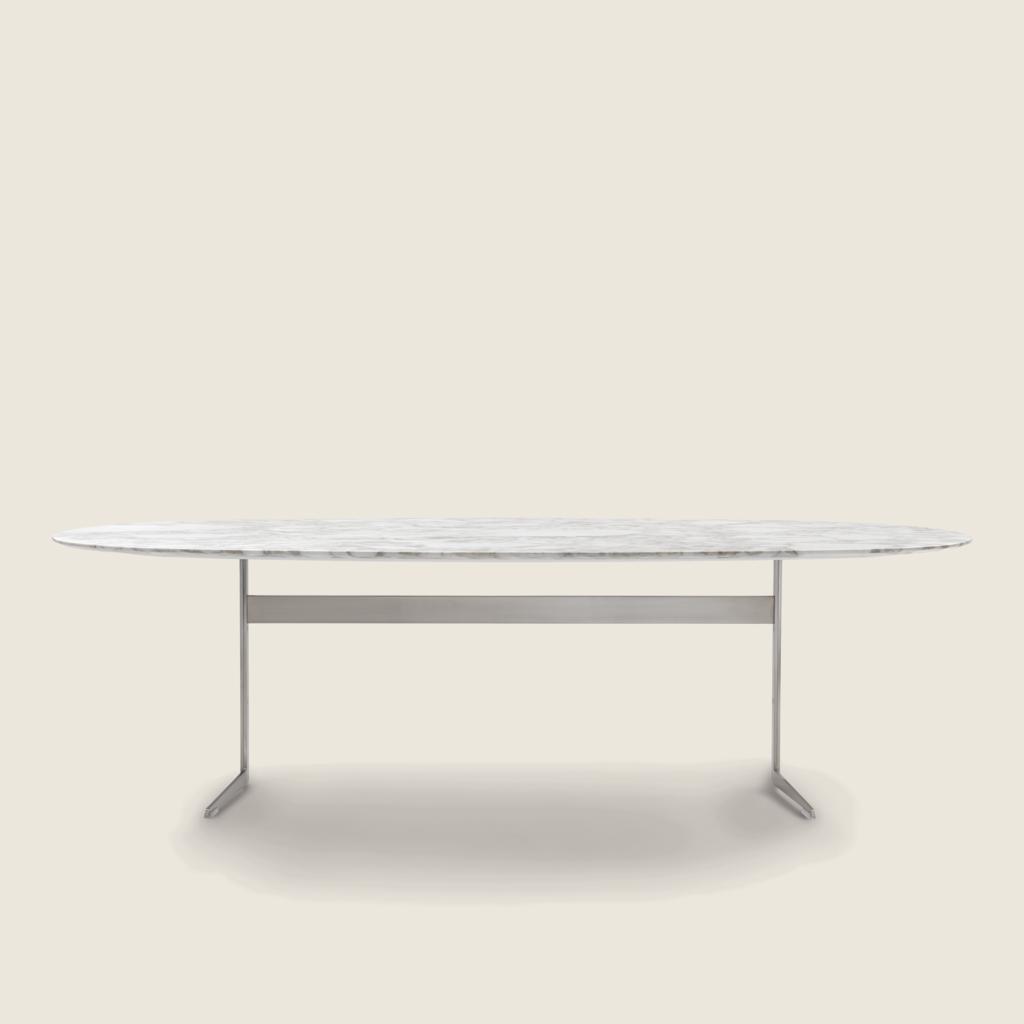 Flexform offers a wide selection of dining tables and small occasional tables, featuring the finest top materials, such as marble, wood, glass, and metal. Whether your space calls for round, oval, rectangular, or extendable formats, these designer pieces are available in a variety of sizes to fit both small and large interior spaces with ease. Each table combines sophisticated finishes, refined veneers, and structural options in lacquered or metallic bases to create a striking visual impact.
